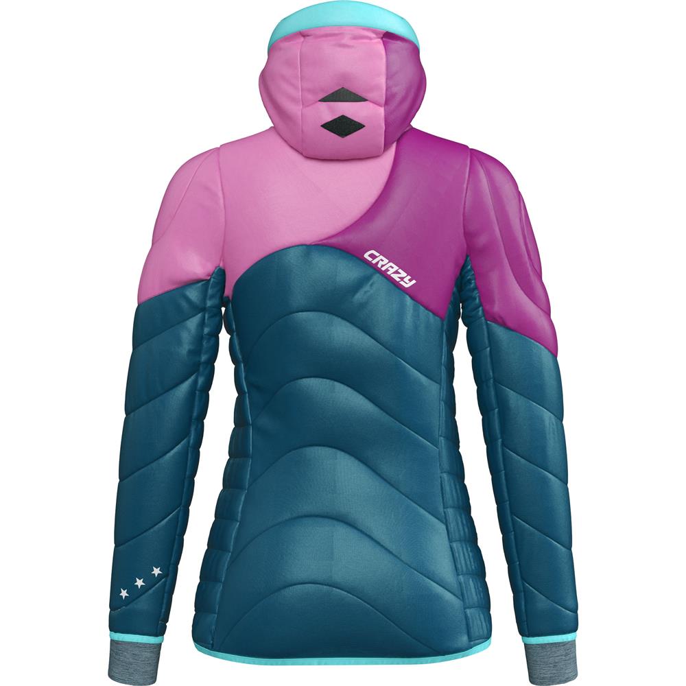 Complete restyling for Crazy's number one jacket. Electra is an insulated jacket perfect for ski mountaineering and mountain endeavours - it packs down very small and is super warm. Now with a new design, for an even more stylish and feminine look.