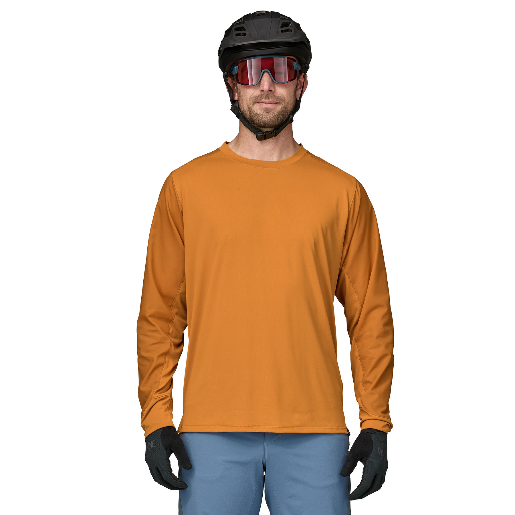 Bike-specific tailoring and longer back hem contour to body posture in the saddle; long sleeves provide additional coverage