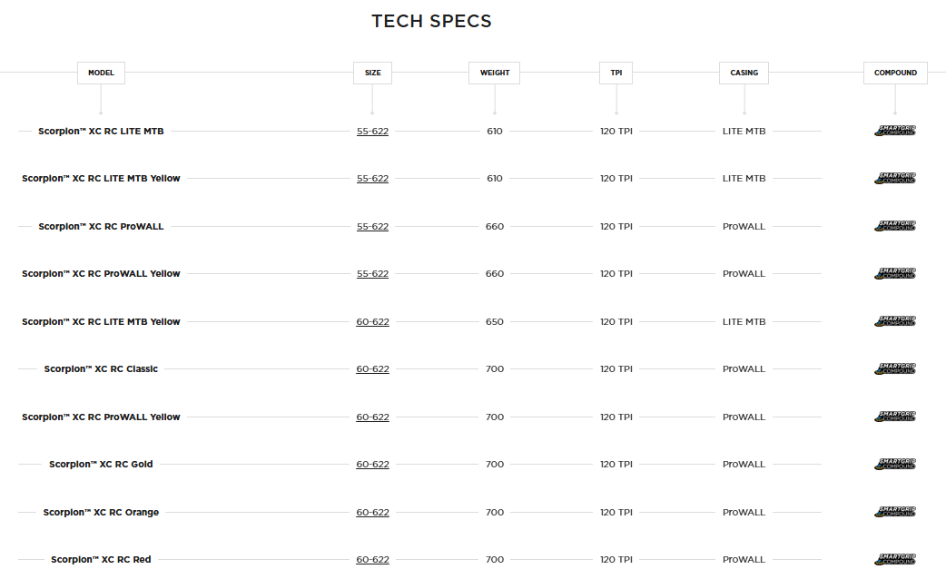Designed for tubeless setups, the tire allows for lower pressure operation, improving comfort and reducing the risk of punctures. Whether navigating hardpacked trails or loose surfaces, the Scorpion™ XC RC delivers reliable performance for competitive riders.