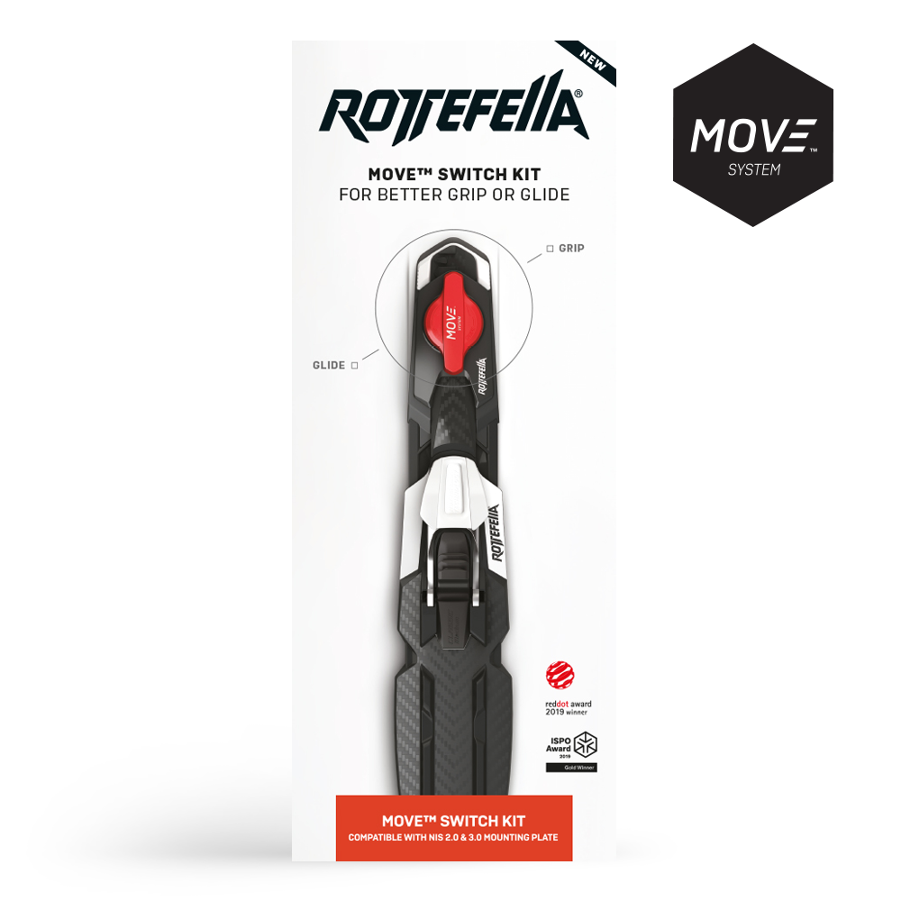Upgrade to Rottefella Move system which provides you with maximum glide when seconds count. Simply lift, push and lock the lever and the binding is moved 30 mm backwards with one simple movement. Perfect for wax skis. Rottefella MOVE™ Race is approved by FIS and can be used in all competitions. Rottefella MOVE Race Kit for NIS 3.0 fits all skis with NIS 3.0 mounting plate.