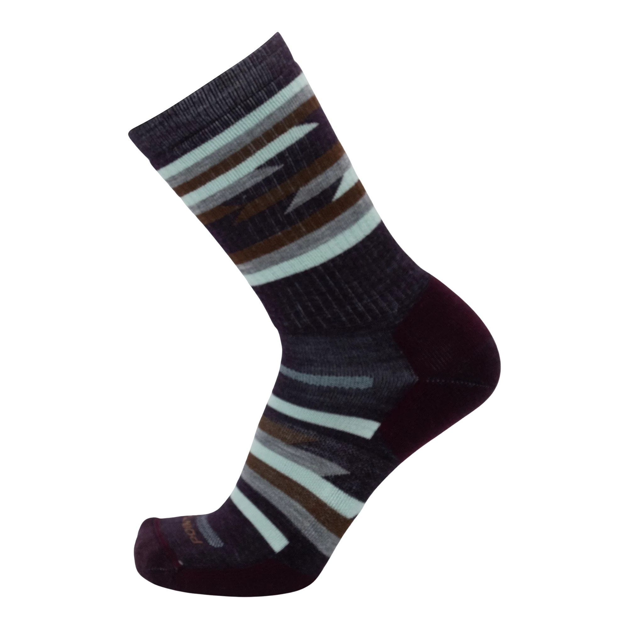 The Santa Fe Medium Crew showcases a striped Southwestern design in earthy tones. With medium cushioning on the instep and leg, this sock delivers superior comfort and protection for any adventure. Soft merino wool insulates, wicks moisture, and prevents hot spots - keeping your feet dry and comfortable in any condition. Perfect for hiking, walking, or long days on your feet.