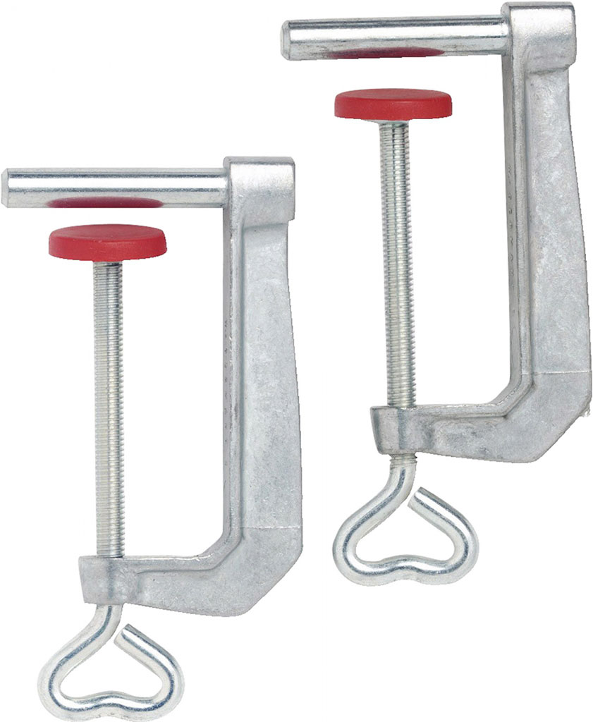 The clamps use a screw tightening mechanism that allows easy adjustment and reliable grip on different table thicknesses, making them suitable both for home users and service professionals who tune skis with Swix equipment.